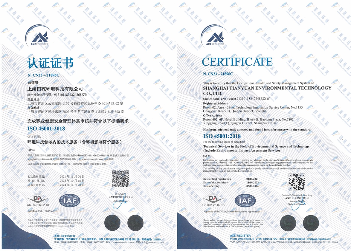 《ISO45001職業(yè)健康安全管理體系認證證書》